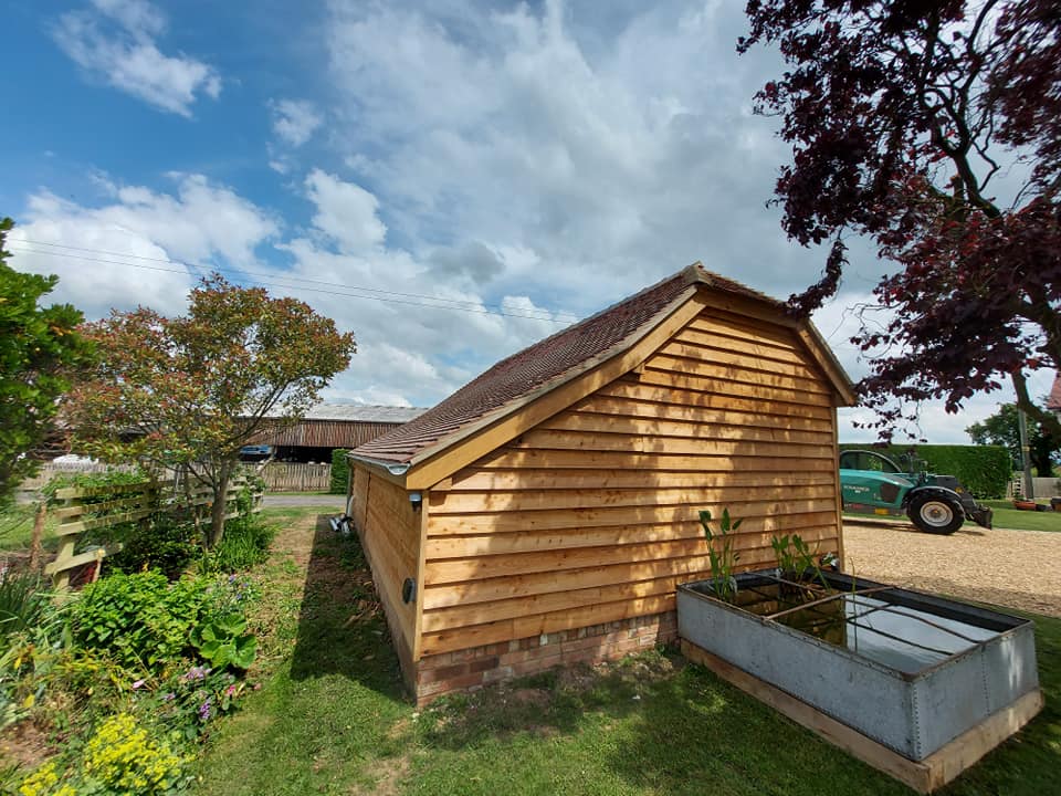 I’ve not posted anything for a while. Its been a very busy year on various projects but here is a recently completed project for some very good customers of Hollymore Developments. This is one that we have seen through from the ground up (credit to Hartpury construction for the groundworks and slab). We made the timber frame in a workshop in the winter and erected it this spring.