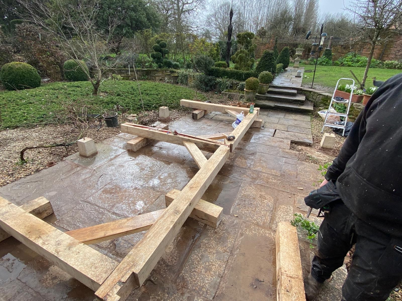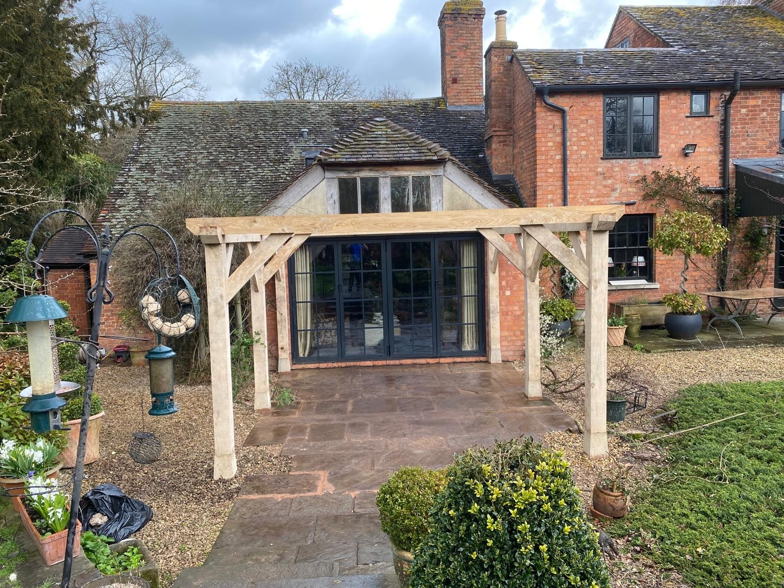 Oak pergola made and installed by the Hollymore Developments team.