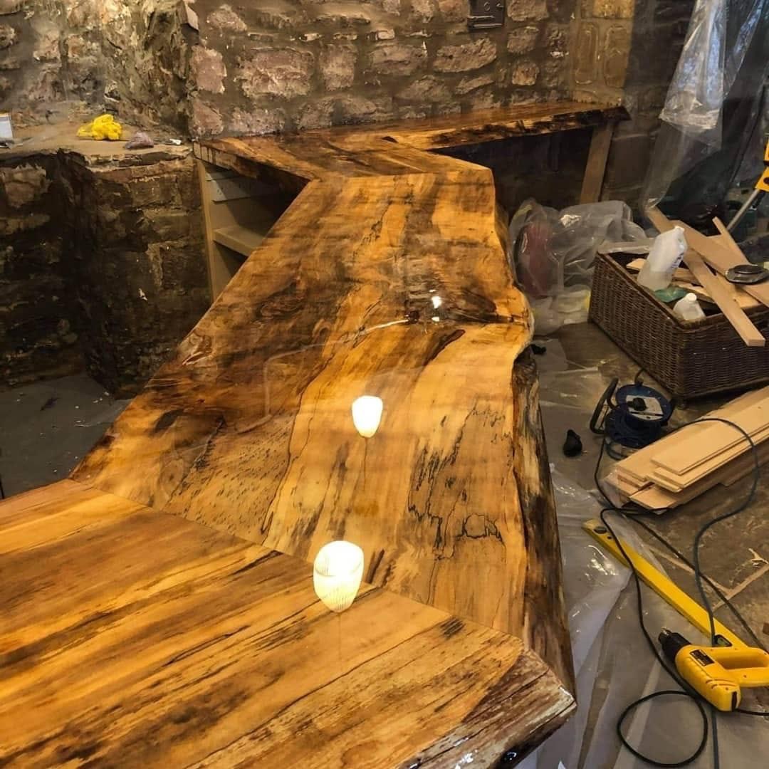 We had the pleasure of installing this bespoke oak bar at The Ferrie Inn, Symonds Yat West. Complete with a resin surface for durability.