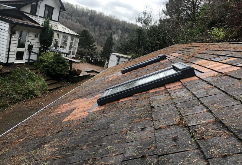 Velux windows fitted in a shingle roof on a wooden lodge in Symonds Yat, also with construction of a vaulted ceiling....